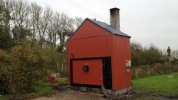 Beskrivelse: Udskiftning af ekstr. halmfyr. Ekstr. skorsten er genanvendt. Kunden var begejstret over hvor meget varme der kunne være i en minibig.