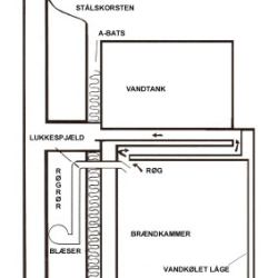 Brandkammeret er fremstillet af 12 mm stålplade og kedlen er isoleret med 300 mm A-bats. Kedlen er forsynet med 1 stk. termostatstyret 380V blæser med automatisk luftstyring ved hjælp af en ilt sonde samt røg temperatur. Dette styres ved hjælp af to computerstyrede drejespjæld. Kedlen er forsynet med 28 røgrør, hvor røgen ledes igennem inden den går ud i skorstenen. Dette giver en god udnyttelse af varmen.