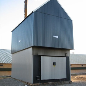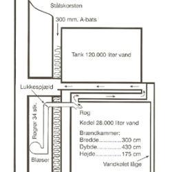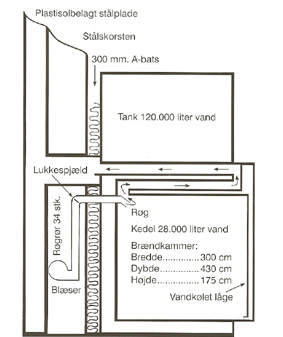 Brandkammeret er fremstillet af 12 mm. stålplade og kedlen er isoleret med 300 mm A-bats og 50 mm. ildfaste sten. Dette styres ved hjælp af to computerstyrede drejespjæld. Kedlen er forsynet med 1 stk. termostatstyret 380V blæser med automatisk luftstyring ved hjælp af en ilt sonde samt røg temperatur. Dette styres ved hjælp af to computerstyrede drejespjæld. Kedlen er forsynet med 34 røgrør, hvor røgen ledes igennem den går ud gennem skorstenen. Dette giver en god udnyttelse af varmen.